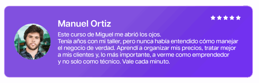 Esto no son solo clases. Son herramientas y acompañamiento para que tu negocio funcione. Hay técnicos que aún sin ser los mejores reparando, crecen y viven muy bien gracias a tener procesos, clientes y gestión.