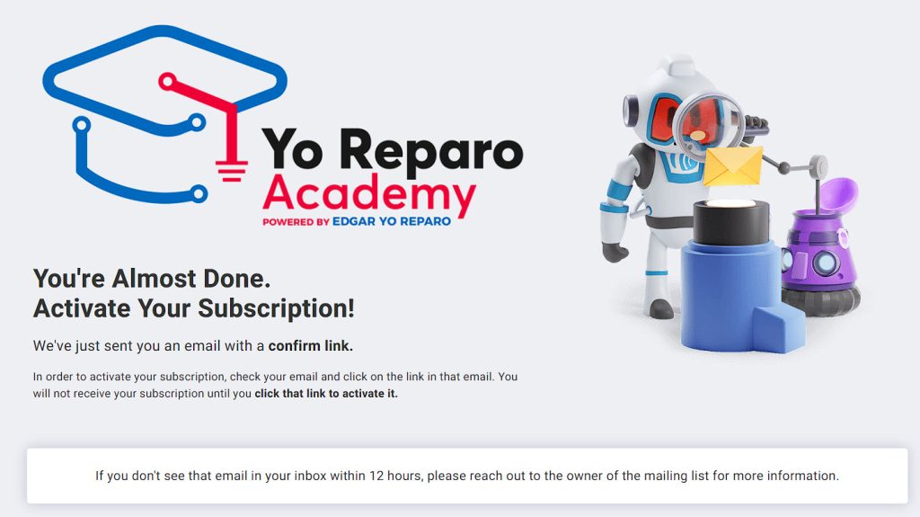 Si te aparece así, busca en tu buzón de correo uno de confirmación o en spam